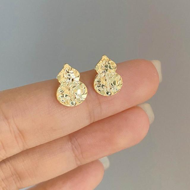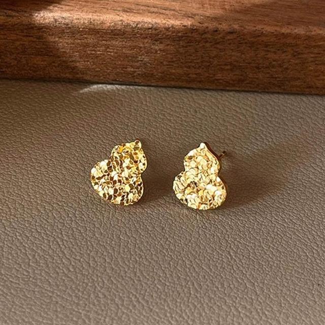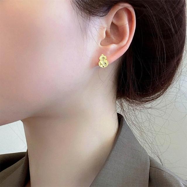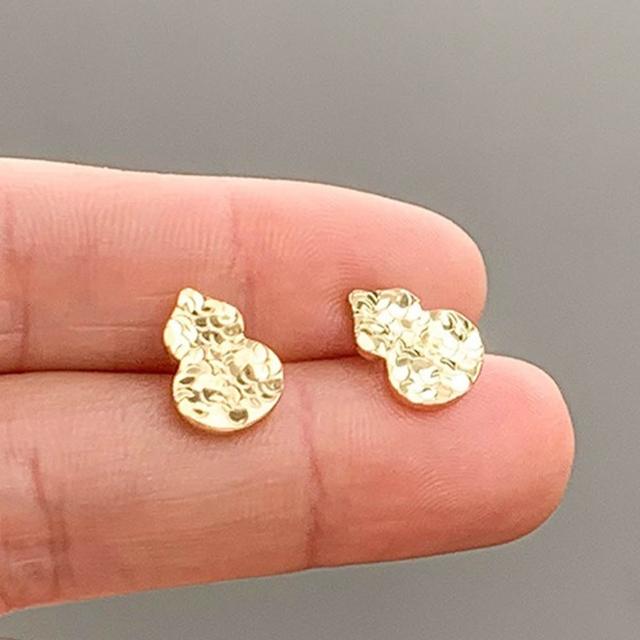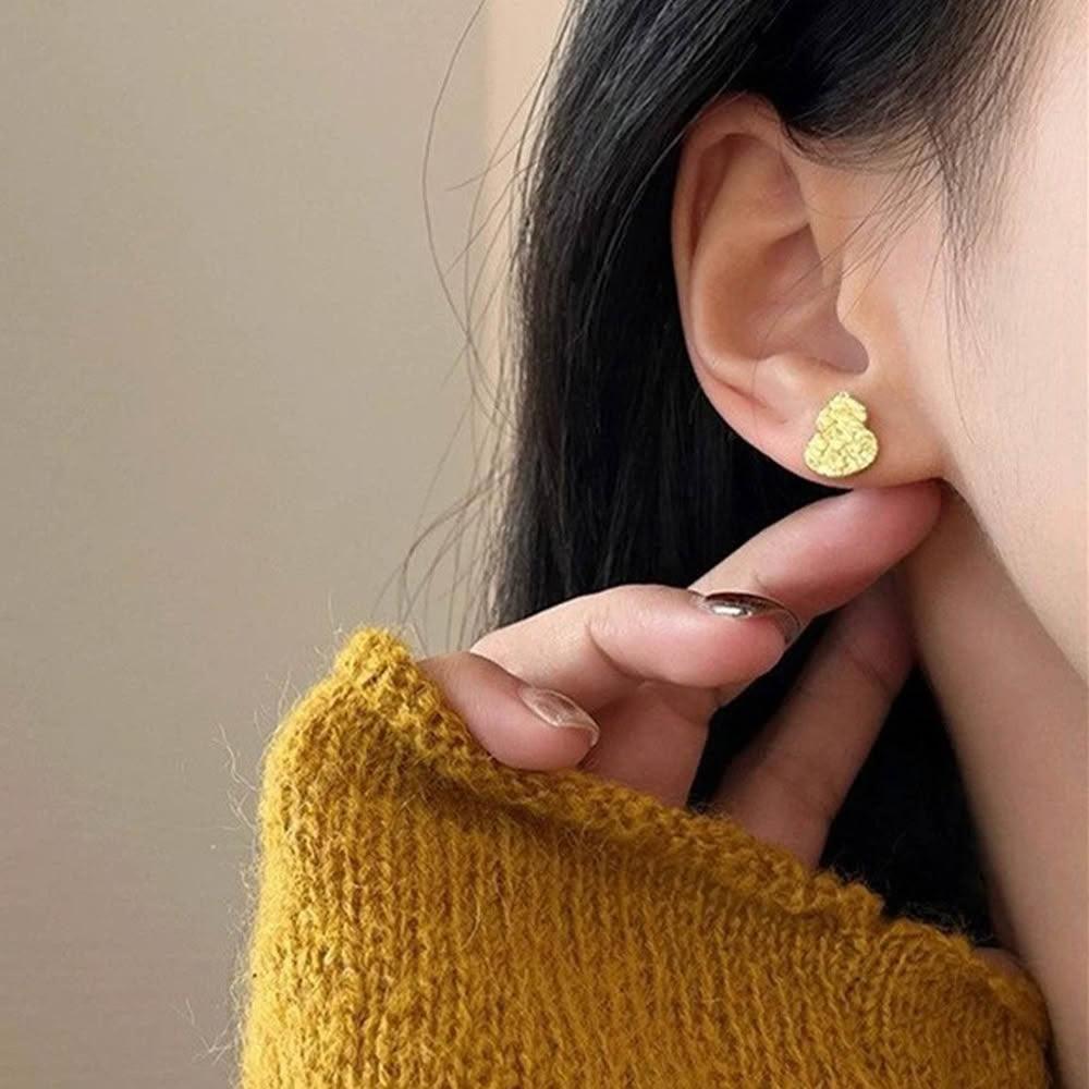 KEDDY耳釘-高級感-百搭-金色耳環-飾品-耳環-女生耳環-穿搭配件-送女生-抗敏感-純銀耳環-銀針-葫蘆-耳針-耳飾