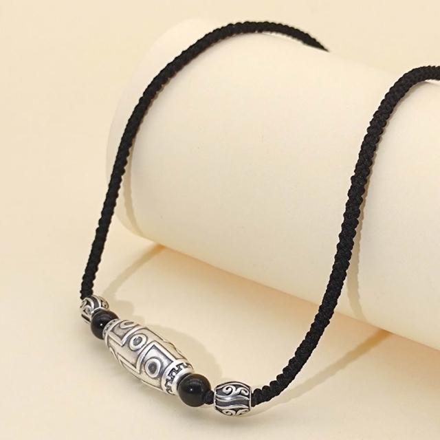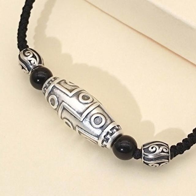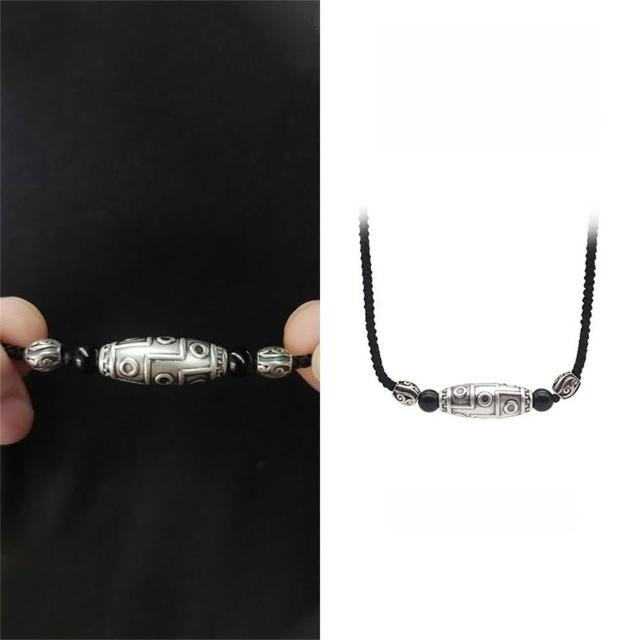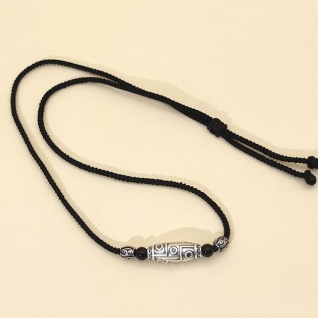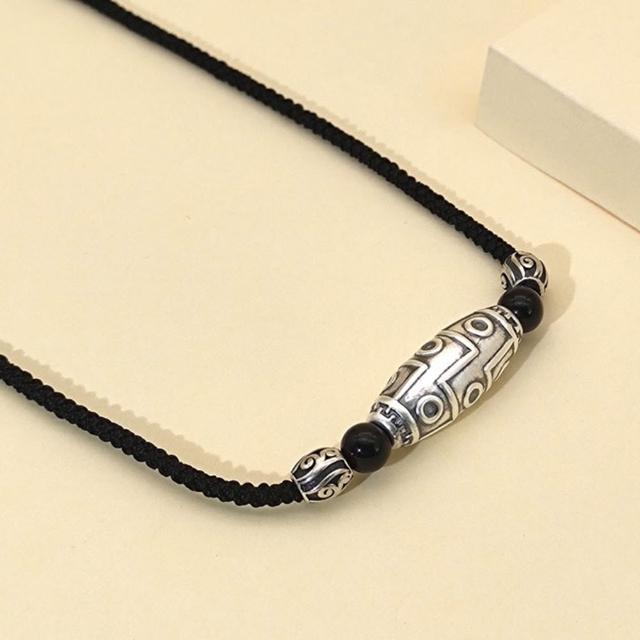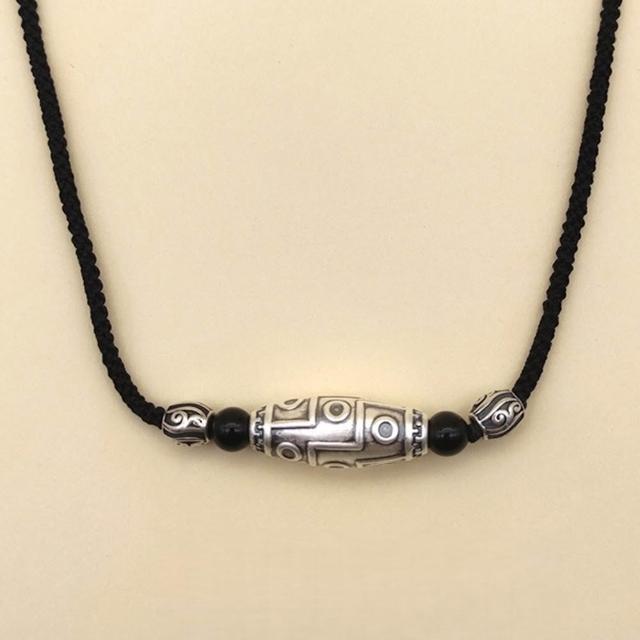 KEDDY九眼天珠-毛衣鏈-長鍊-項鍊-男生項鍊-黑曜石-純銀項鍊-復古