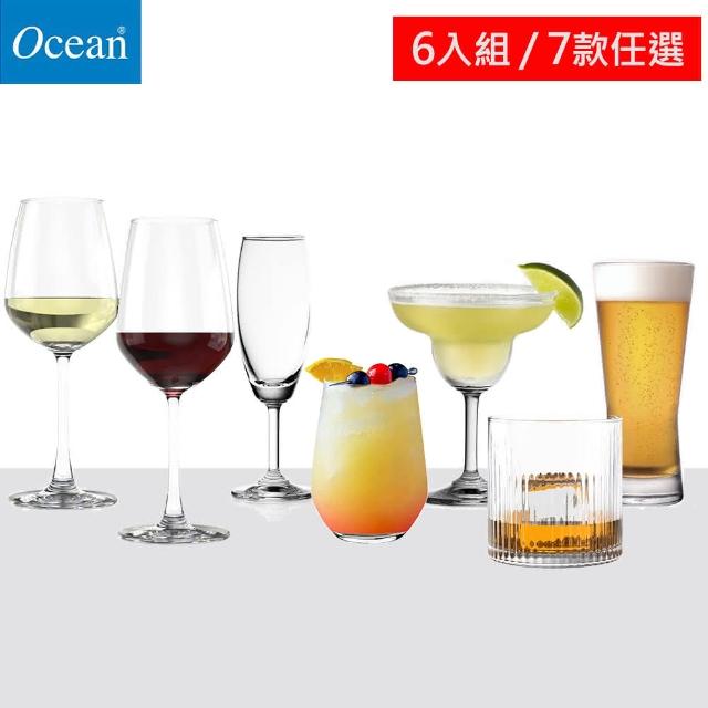 Ocean無鉛透亮玻璃酒杯6入組/7款任選(紅酒杯 白酒杯 香檳杯 威士忌杯 無梗杯 調酒杯 啤酒杯 玻璃杯)