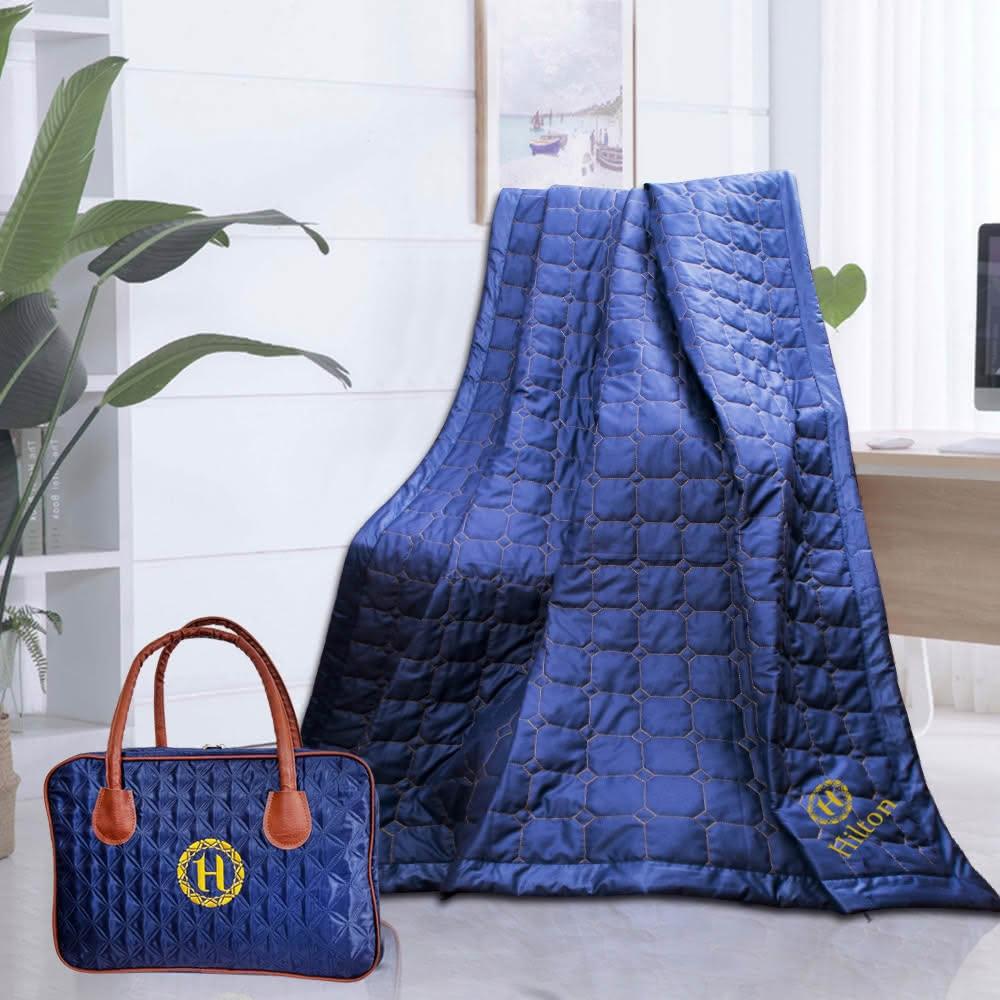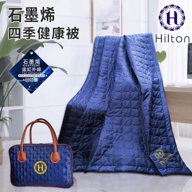 Hilton 希爾頓奢華魅力藍石墨烯健康四季被/披肩被(毯被/被子/薄被/空調被/手拿包/收納包)