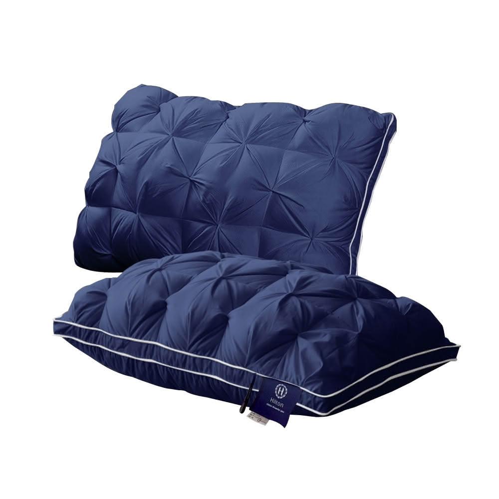 Hilton 希爾頓五星級VIP。白鵝羽毛輕柔精梳棉立體枕/藍色(枕頭/透氣枕/羽毛枕/羽絨枕)