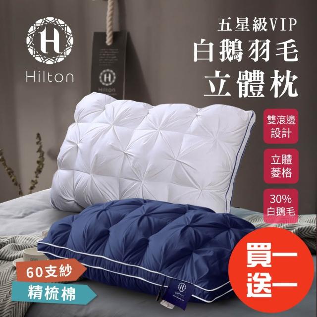 Hilton 希爾頓五星級VIP。白鵝羽毛輕柔精梳棉立體枕/買一送一/二色任選(枕頭/透氣枕/羽毛枕/羽絨枕)