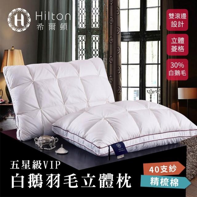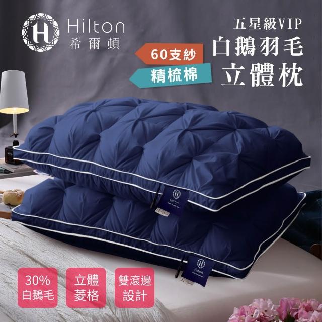 Hilton 希爾頓五星級VIP。白鵝羽毛輕柔精梳棉立體枕/買一送一/二色任選(枕頭/透氣枕/羽毛枕/羽絨枕)