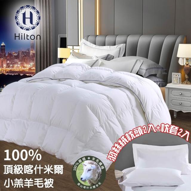Hilton 希爾頓100%喀什米爾五星級奢華小羔羊毛被3.0KG加碼贈羽絲絨枕頭2入+枕套2入(羊毛被/棉被/被子)