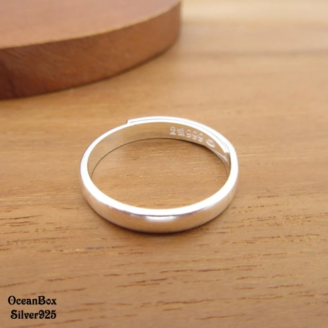海洋盒子3MM寬。簡約亮面素銀色足銀S999純銀戒指(S999純銀戒指.可調整戒圍)