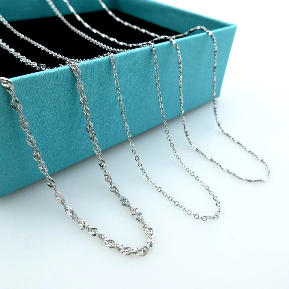 海洋盒子推薦款。女用百搭細緻925純銀鍊子.細短鍊細長鍊(925純銀外鍍專櫃級正白k.細鍊)