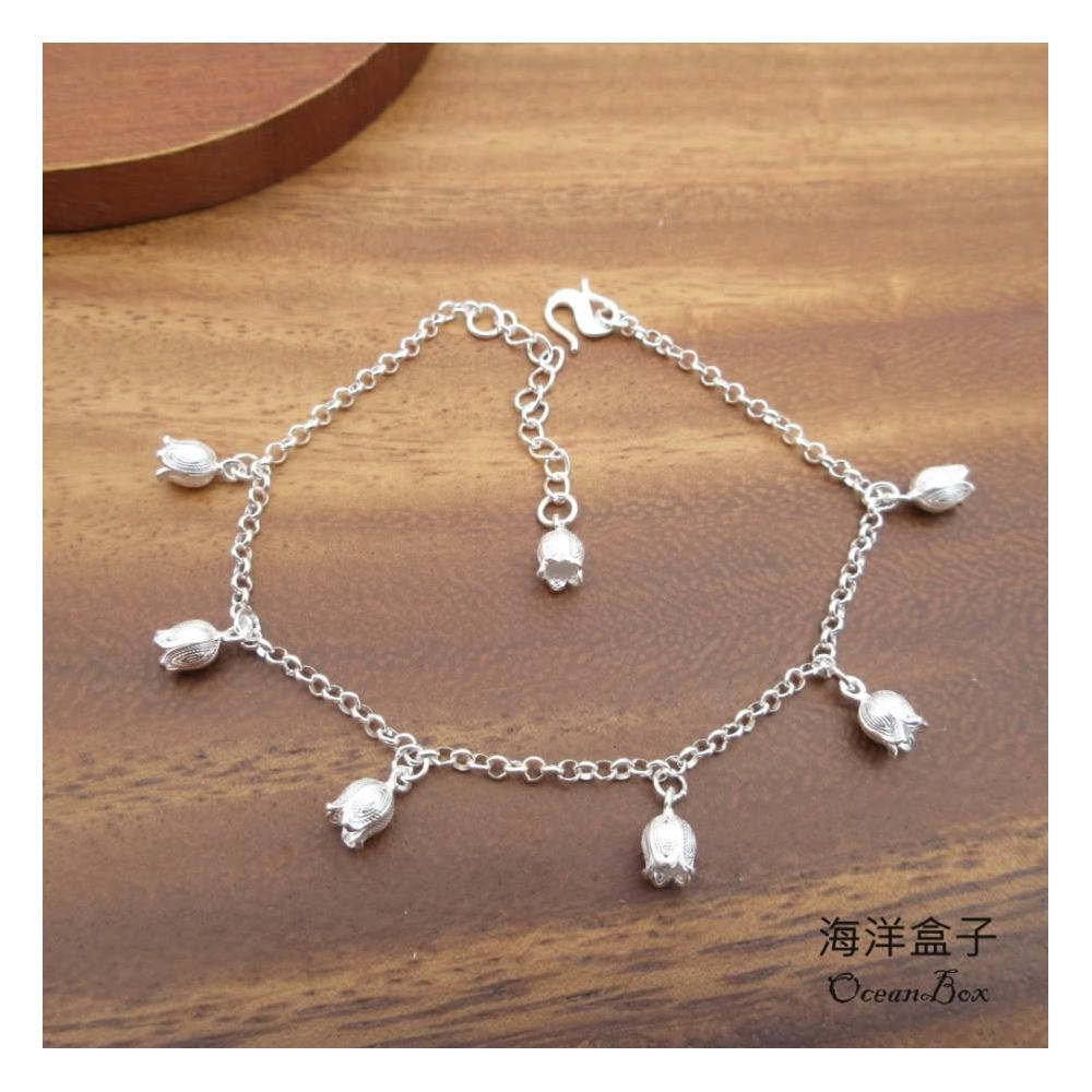 海洋盒子鈴蘭花垂墜流蘇S999純銀手鍊(女用手鍊)附贈禮盒