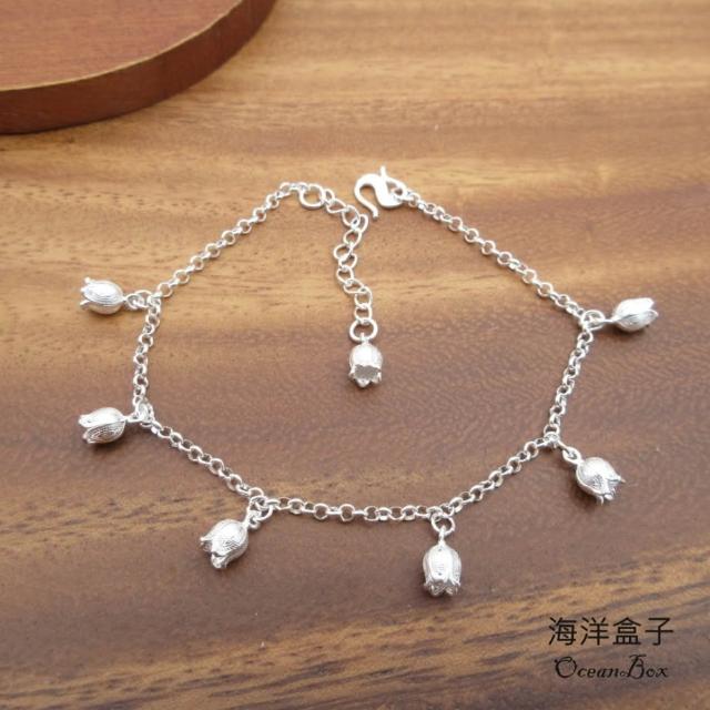 海洋盒子鈴蘭花垂墜流蘇S999純銀手鍊(女用手鍊)附贈禮盒
