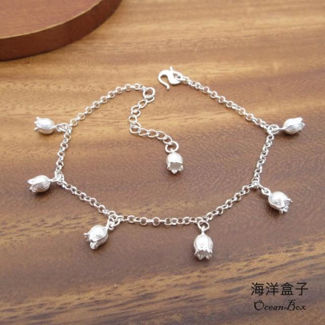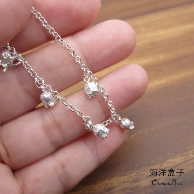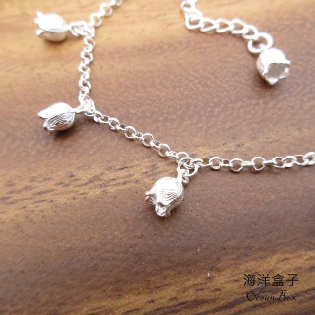 海洋盒子鈴蘭花垂墜流蘇S999純銀手鍊(女用手鍊)附贈禮盒