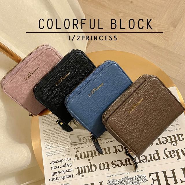 1/2princess真皮彩色方塊中短夾-4色A0088