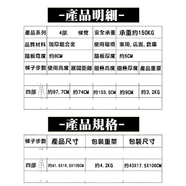 四步鋁合金折疊梯凳(A字梯 折疊梯 家用梯 鋁梯 人字梯 工作梯 四步梯)