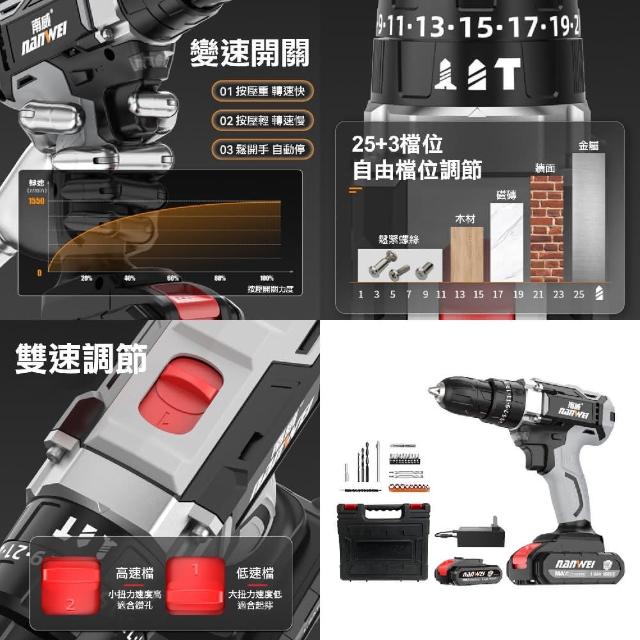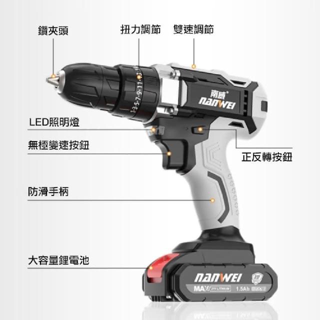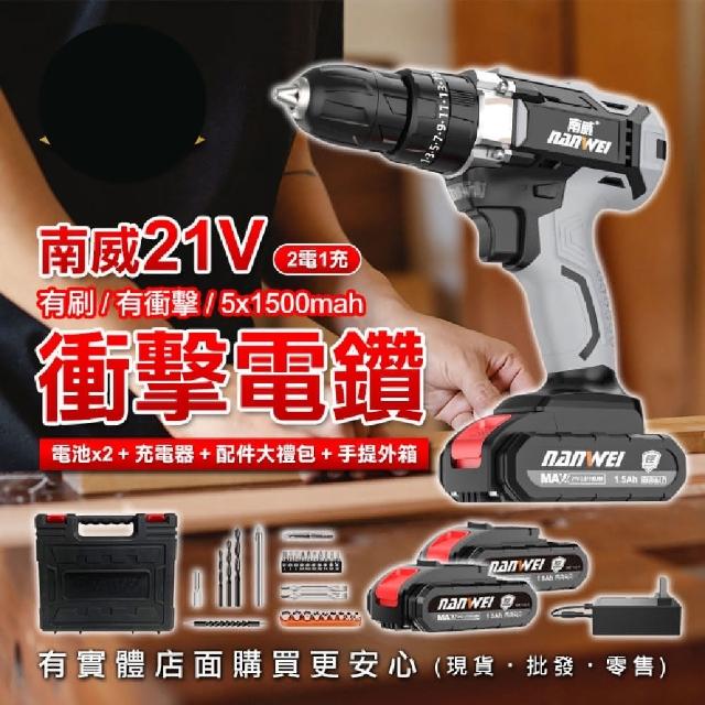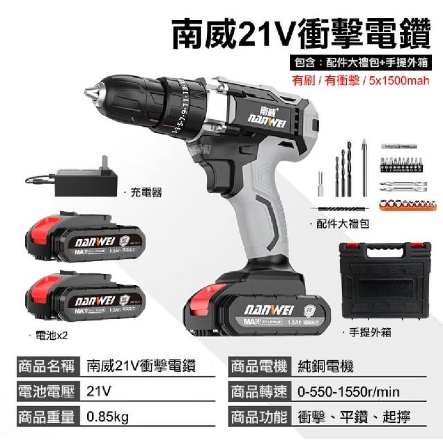 南威21V衝擊電鑽2電1充+配件(充電電鑽 鋰電電鑽 有刷 有衝擊 五金工具 電動工具 充電式)