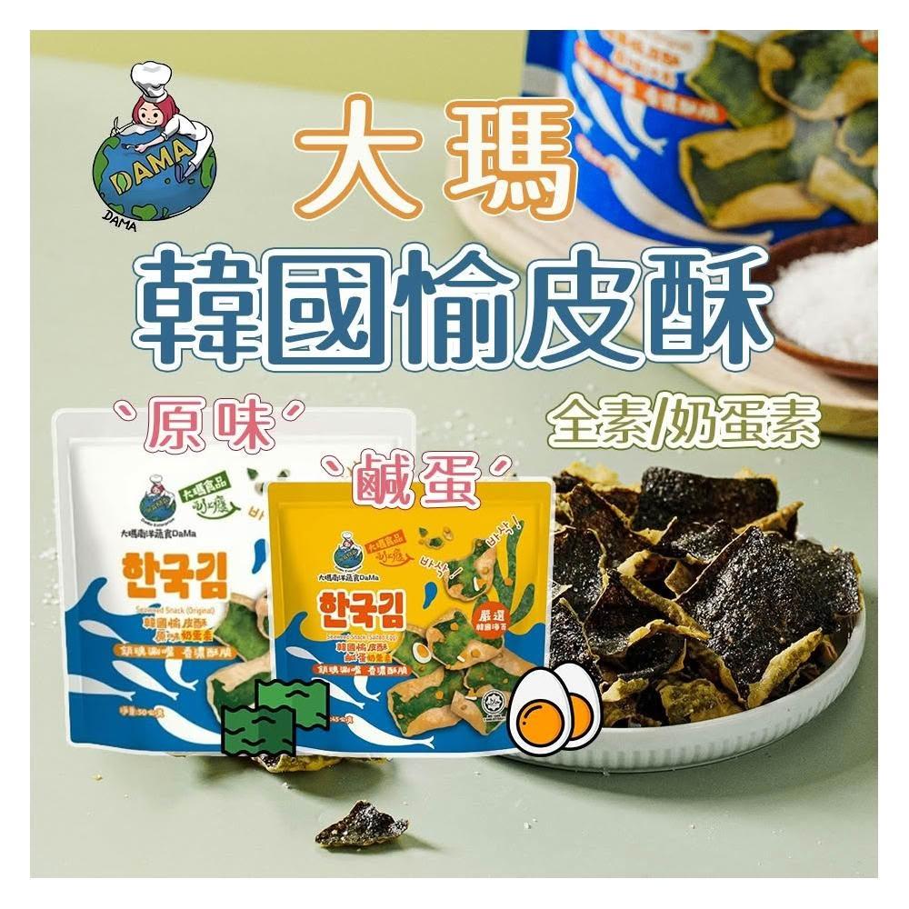 大瑪南洋蔬食愛淘購物 大瑪 韓國愉皮酥 海苔酥 素食 餅乾 海苔 原味 鹹蛋口味 全素 奶蛋素