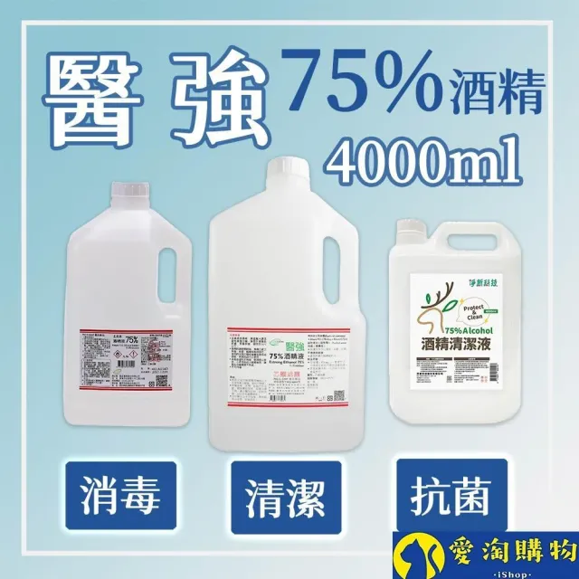 愛淘購物 酒精 藥用酒精 醫强 淨新 克司博 酒精清潔液 清潔 消毒 抗菌 4000ml