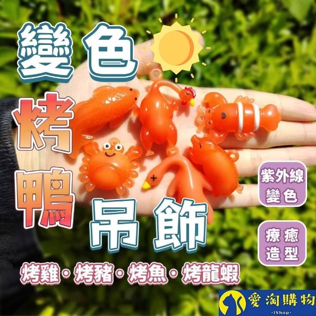 愛淘購物 變色烤鴨吊飾 鑰匙圈 烤雞 魚 豬 蝦 螃蟹 照射陽光變色 變色烤鴨掛件 汽車掛件吊飾