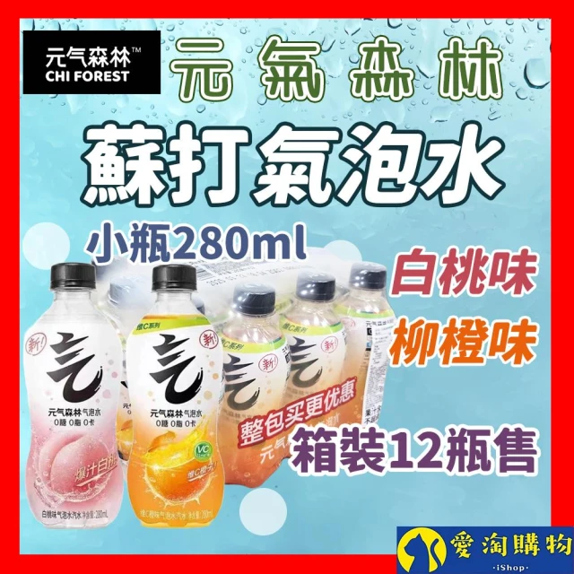 CHI FOREST 元氣森林【愛淘購物】元氣森林 白桃味 柳橙味 蘇打氣泡水 箱裝12瓶 280ml 小瓶 氣泡水