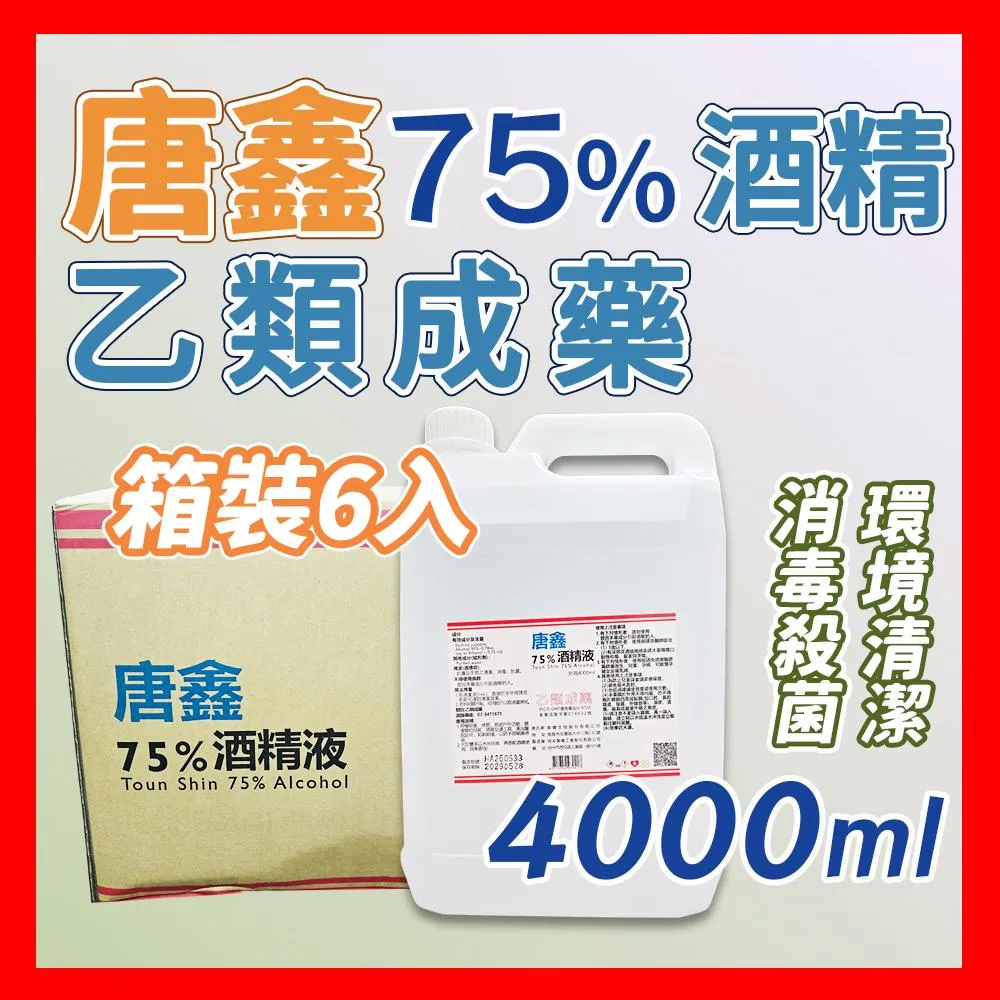 唐鑫愛淘購物 唐鑫 藥用酒精 75%酒精 箱裝6入 克司博 生發 醫強 艾力特 醫用 清潔 消毒 抗菌 4000ml