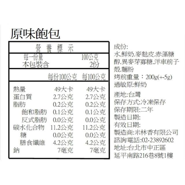米林香麥麩皮飽包 冷凍出貨 一顆49大卡|淨碳7.0g 取代80%麵粉 無蔗糖 飽足感主食 饅頭 麵包 餐包
