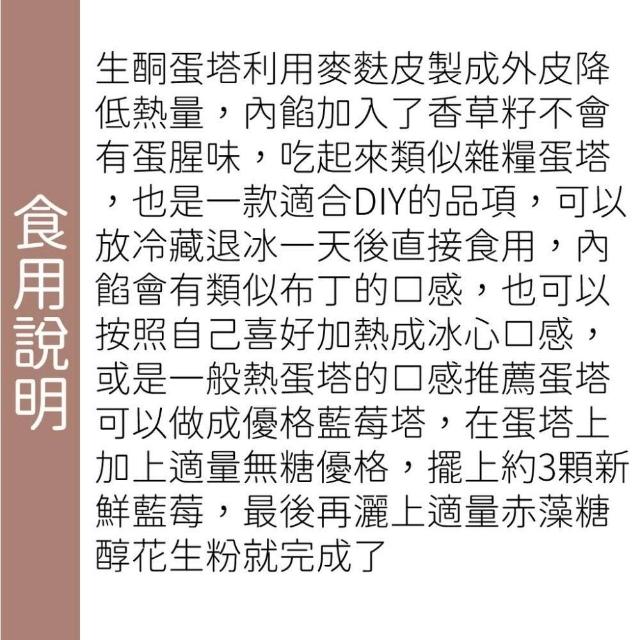 米林香無麵粉麥麩皮蛋塔 冷凍出貨 一顆50大卡|淨碳2.0g 無澱粉無蔗糖 飽足感主食 月餅 甜點