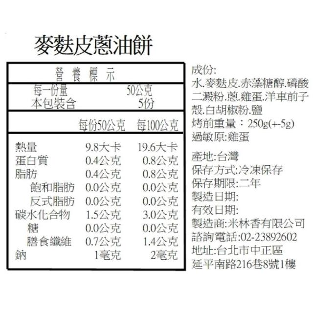 黃正宜低卡餐麥麩皮餅皮|蔥油餅5片 冷凍出貨 一入10大卡|淨碳0.8g 無麵粉無蔗糖滿足感 主食
