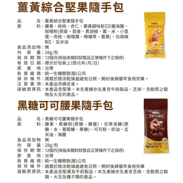 統一生機 堅果 果乾 腰果 薑黃 隨手包 黑糖可可腰果 無調味綜合堅果 薄鹽 薑黃綜合堅果 綜合堅果 928福利社