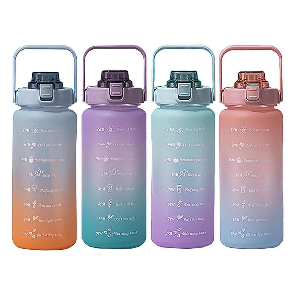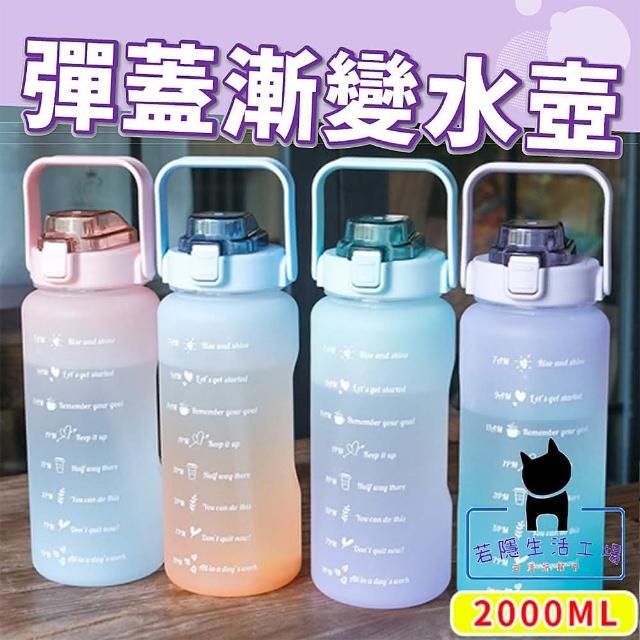 磨砂款大容量漸變水壺 2000ml(太空瓶 吸管刻度 運動水壺 漸層水杯 磨砂水杯水瓶 漸層水壺 C042)