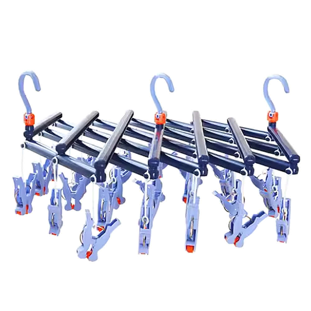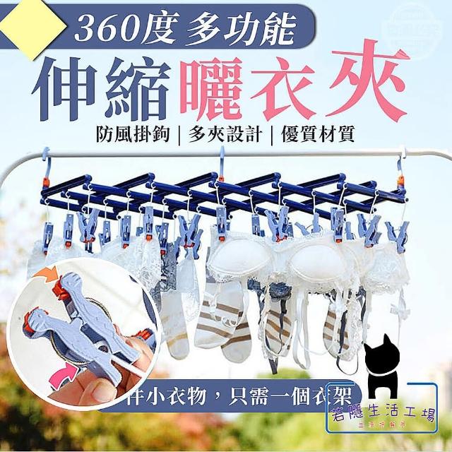 19夾秒收伸縮曬衣夾(秒收衣架 伸縮曬衣夾 襪子夾 內衣夾 伸縮 衣架 滾輪式 曬衣架 滾輪衣夾)