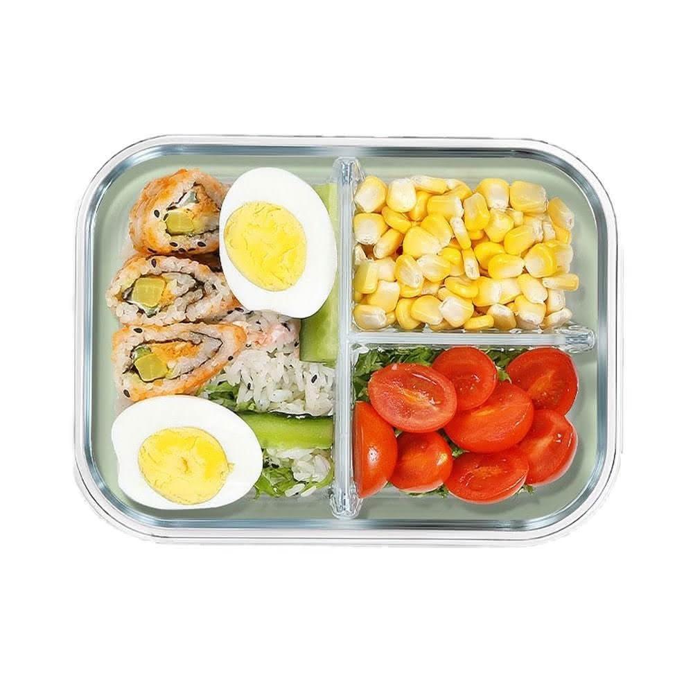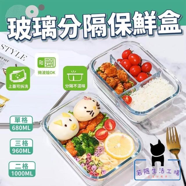 《960ml-三格》玻璃保鮮盒 分隔便當盒(便當盒 透明玻璃保鮮盒 可微波 密封盒 保鮮盒 耐熱)