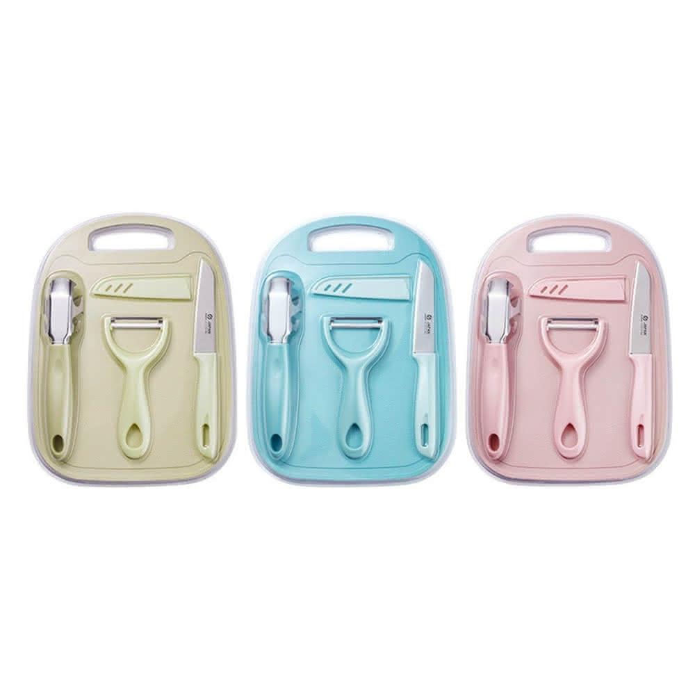 水果刀四件組 水果刀 削皮刀 砧板 提鍋器 露營用具 小刀 宿舍用菜刀 便攜刀具組 刀具