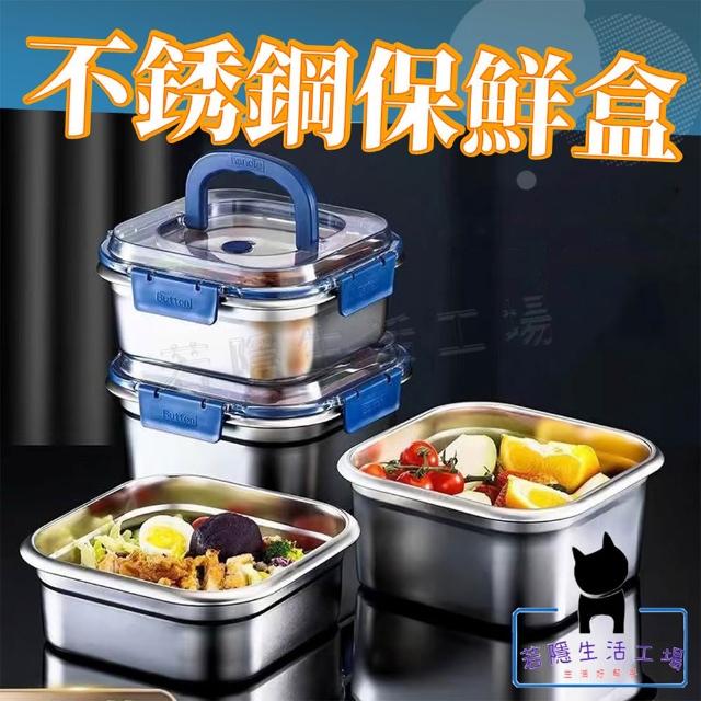 不銹鋼保鮮盒 四扣密封保鮮盒 便當盒 手提 冰箱收納盒 保鮮 大容量 耐高溫 保鮮盒