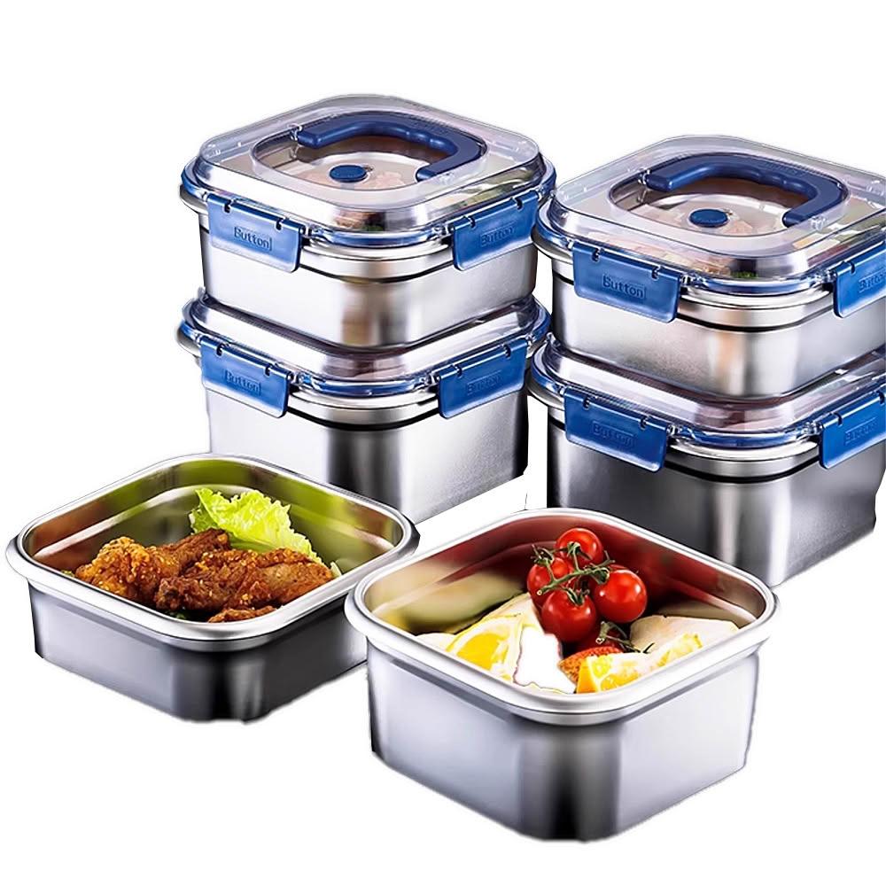 不銹鋼保鮮盒 四扣密封保鮮盒 便當盒 手提 冰箱收納盒 保鮮 大容量 耐高溫 保鮮盒