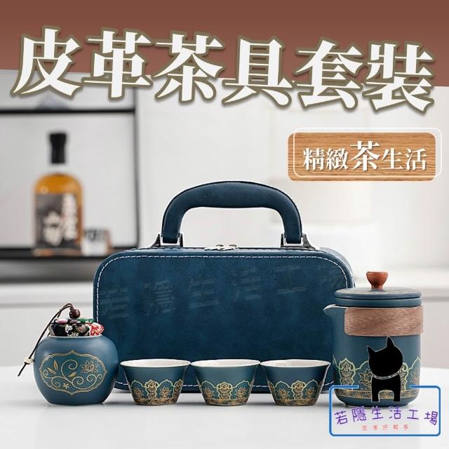 皮革茶具套裝 便攜旅行茶具 泡茶組 陶瓷泡茶杯 一壺三杯 快客杯 茶杯 茶壺 茶藝文化