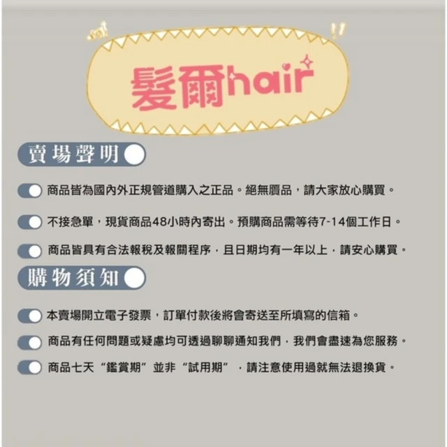 - 本公司對於所販售具遞延性之商品或服務,消費者權益均受保障。如因商店無法提供商品或服務,請與本公司聯繫辦理退貨或換成等值商品。