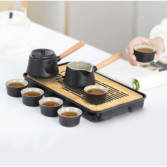陶瓷側把壺旅行茶具套組 /附收納包(泡茶杯 旅行泡茶 茶杯 茶器套裝組)