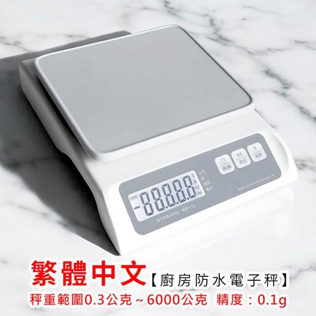 廚房防水電子秤 6000g/0.1g |繁體中文操作・LED背光顯示・烘焙廚房秤