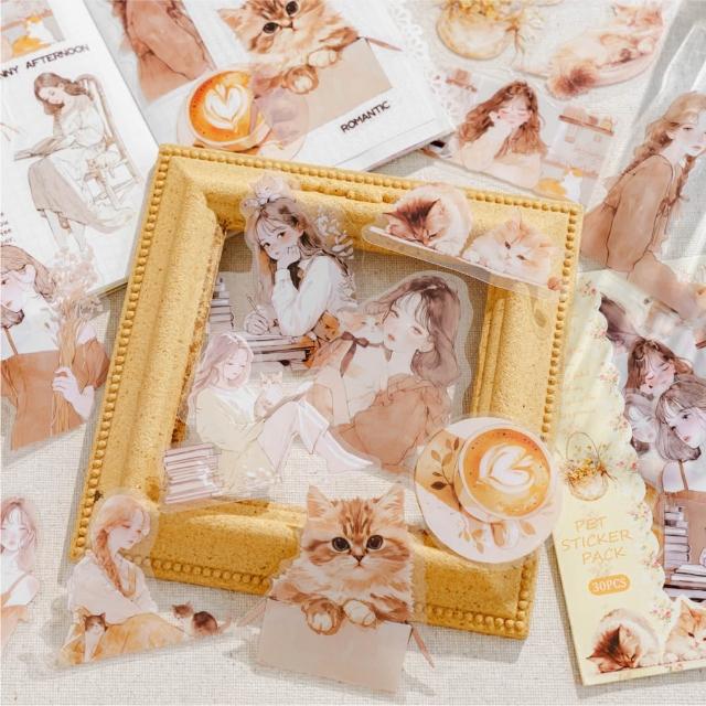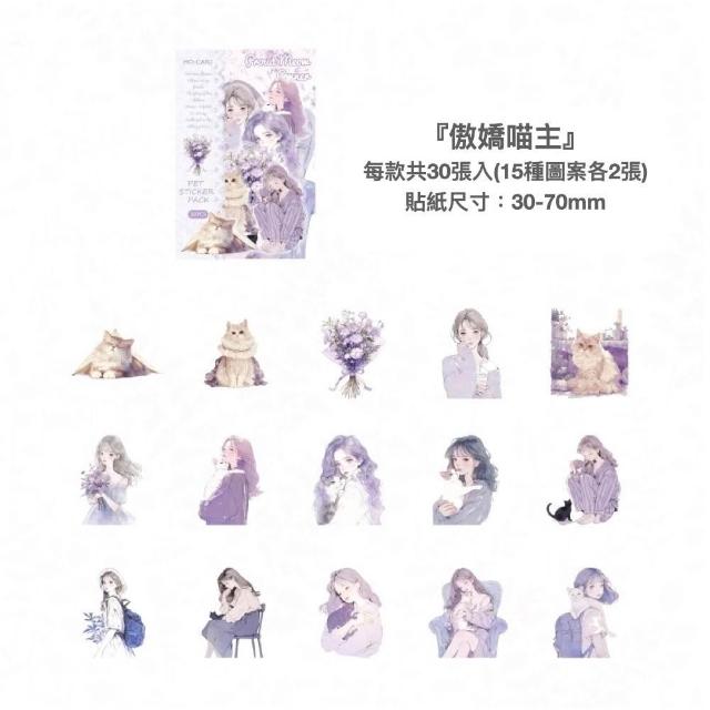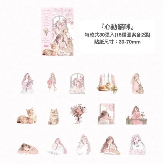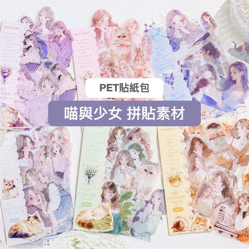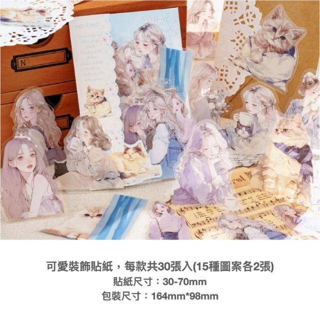 台灣人妻四處飛丨 貼紙【陌墨喵系列】紙質 PET貼紙 30張入 夢幻風 手帳裝飾 拼貼素材 文字貼紙 標籤貼