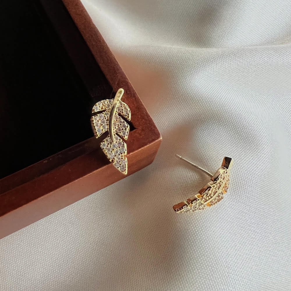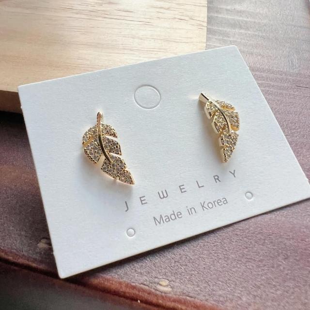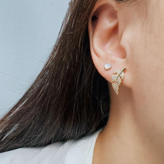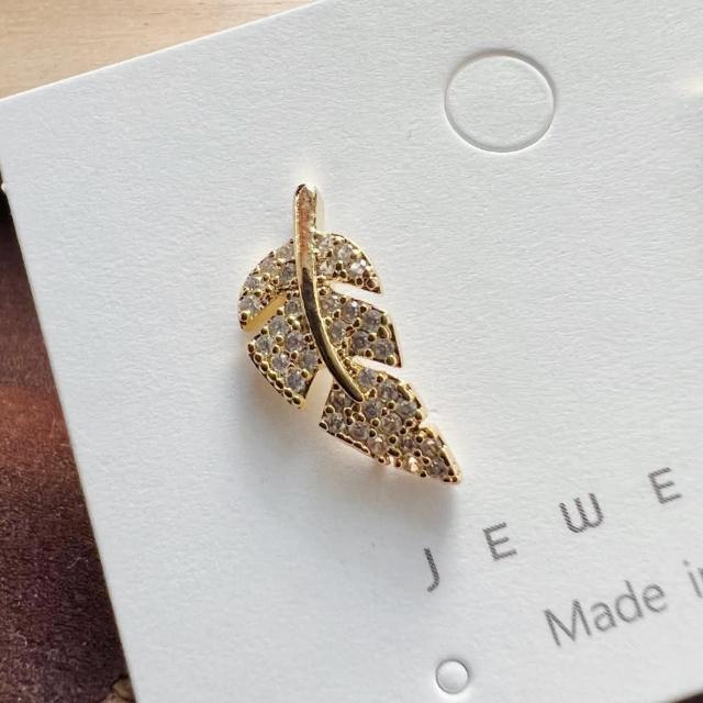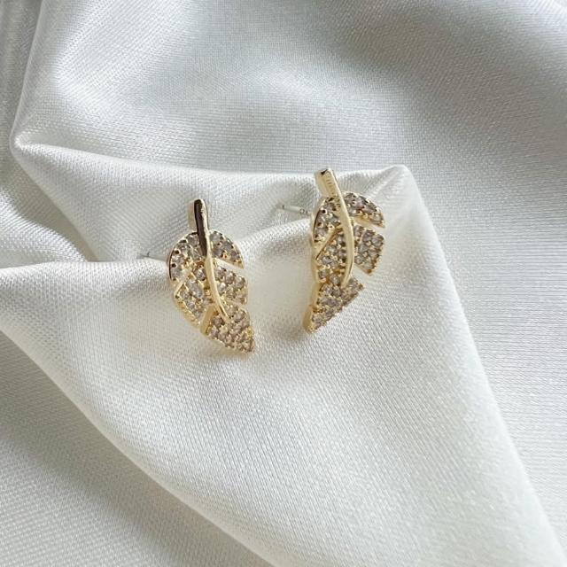 柏琳飾物所滿鋯石小樹葉耳環(樹葉 鋯石 鑽 耳環 耳釘)
