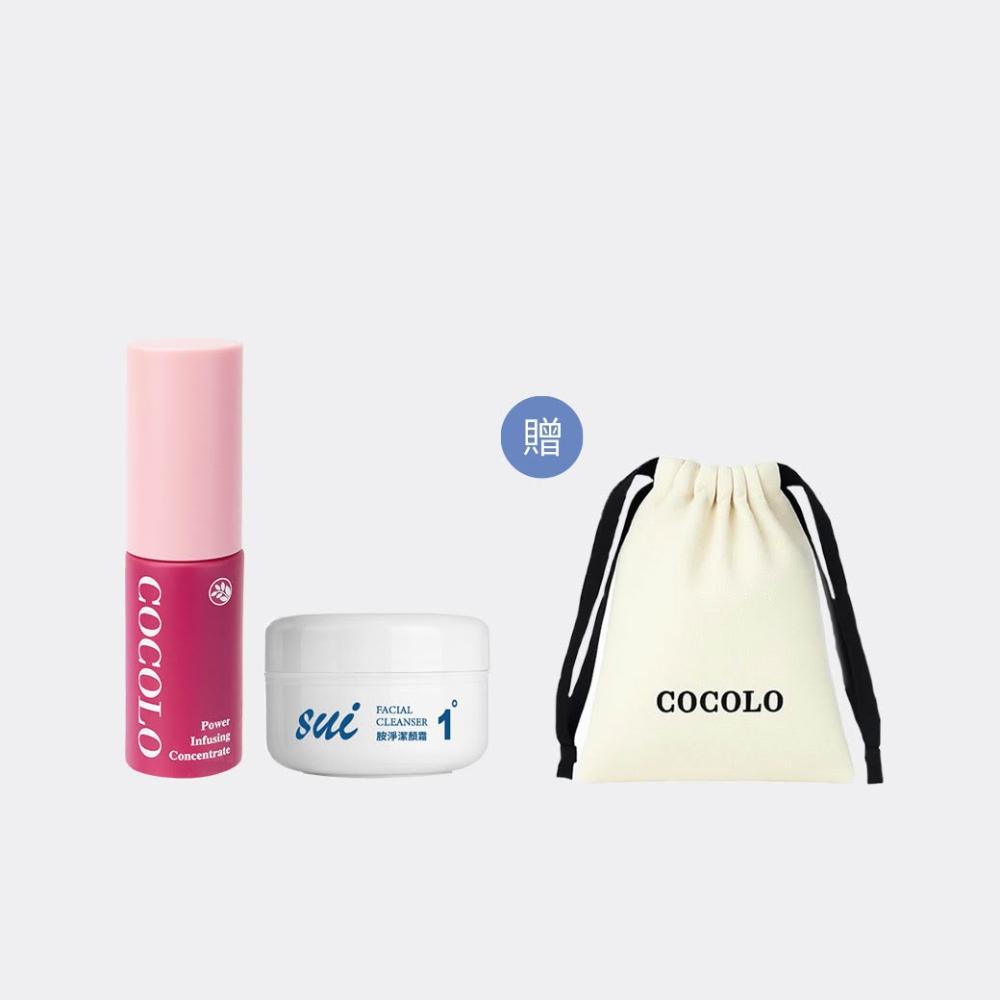 COCOLO玩美旅行組|滴肌菁10ml+sui 潔顏霜10g 附品牌束口袋(米色)