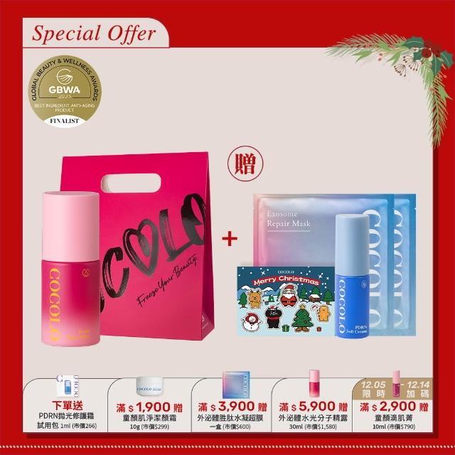 COCOLO外泌體水光分子精露 30ml 聖誕禮袋 (贈外泌體面膜2片+PDRN拋光霜10ml+聖誕貼紙)