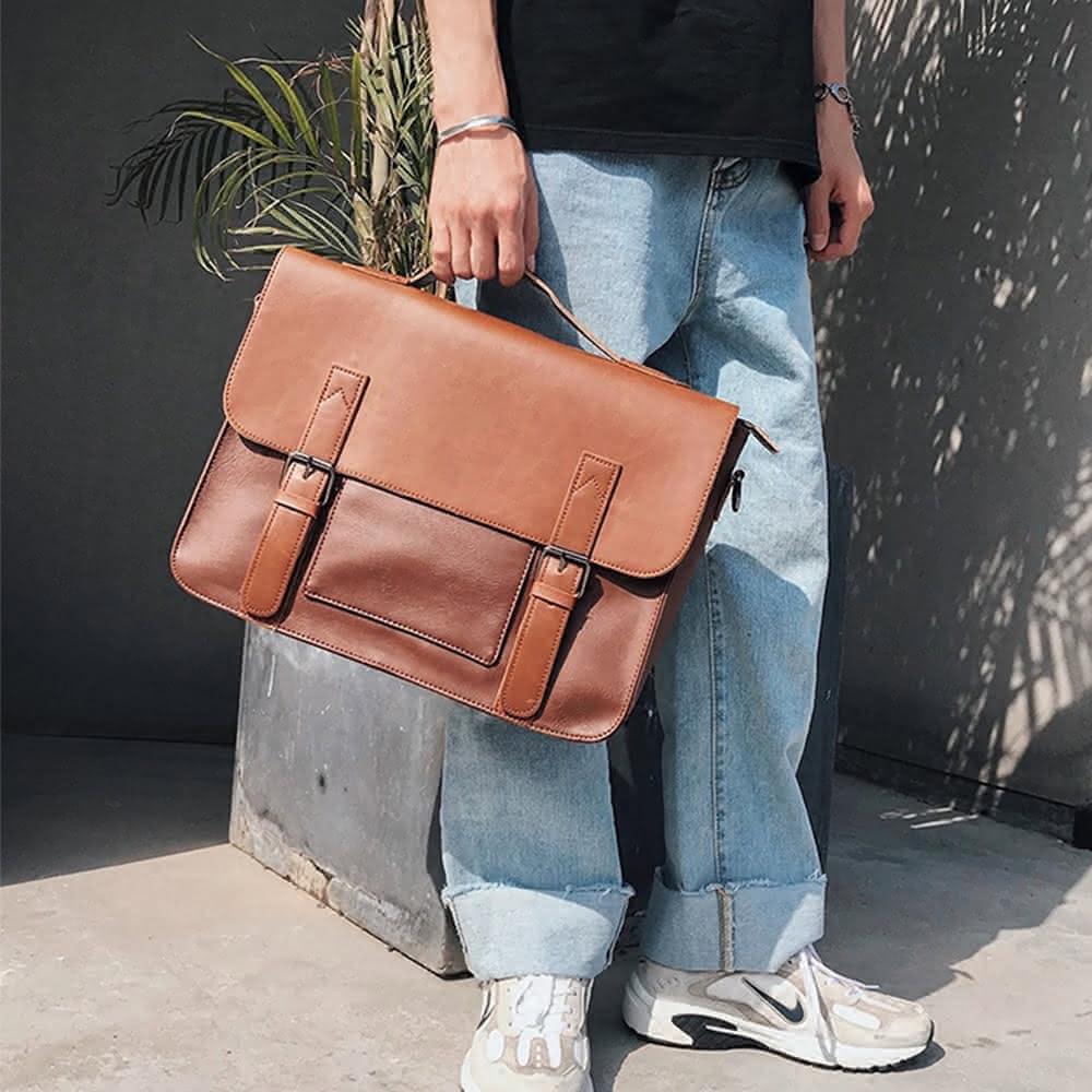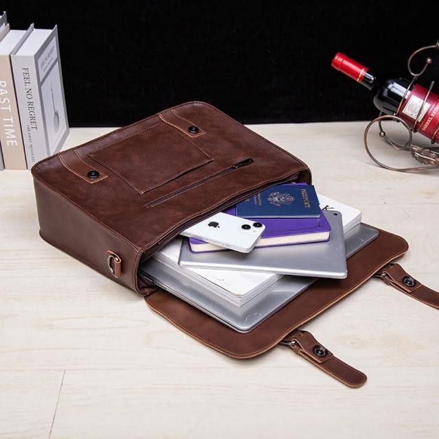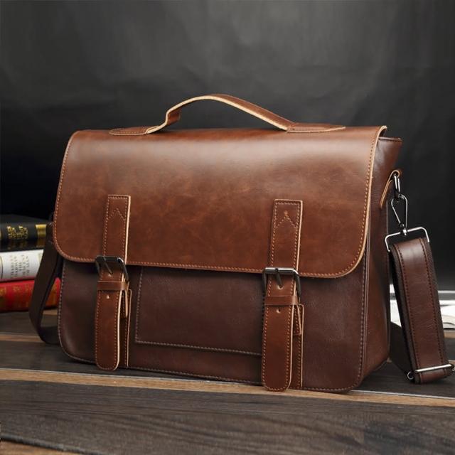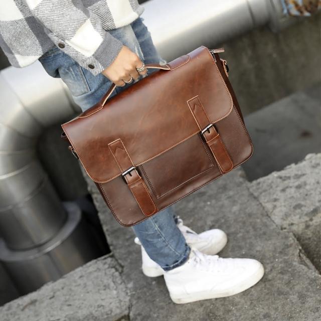 BONum 博紐韓版經典復古瘋馬皮郵差包書包筆電包 旅行包 兩天一夜 型男 公事包 手提包