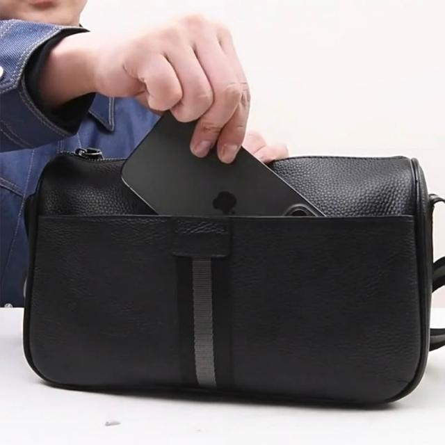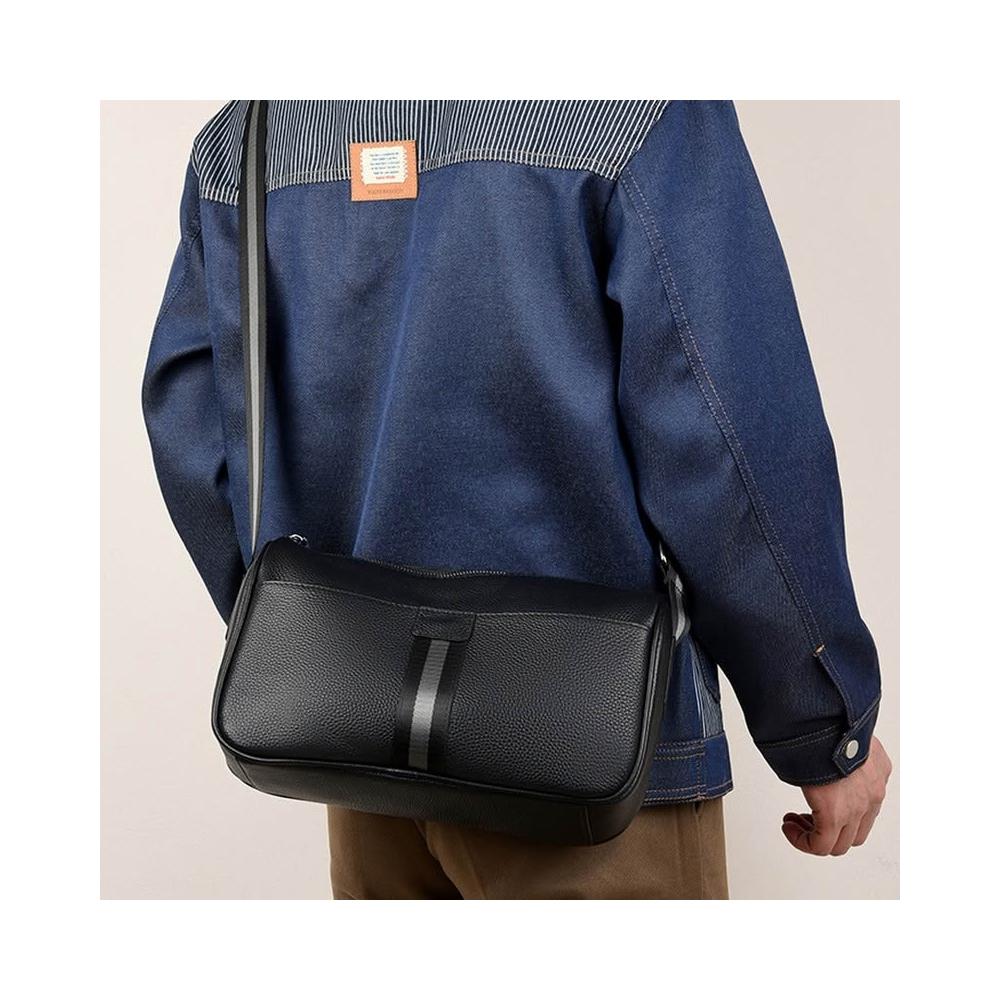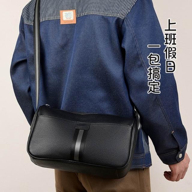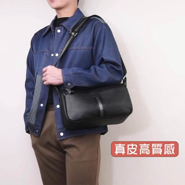 BONum 博紐男士真皮簡約織帶單肩隨身包