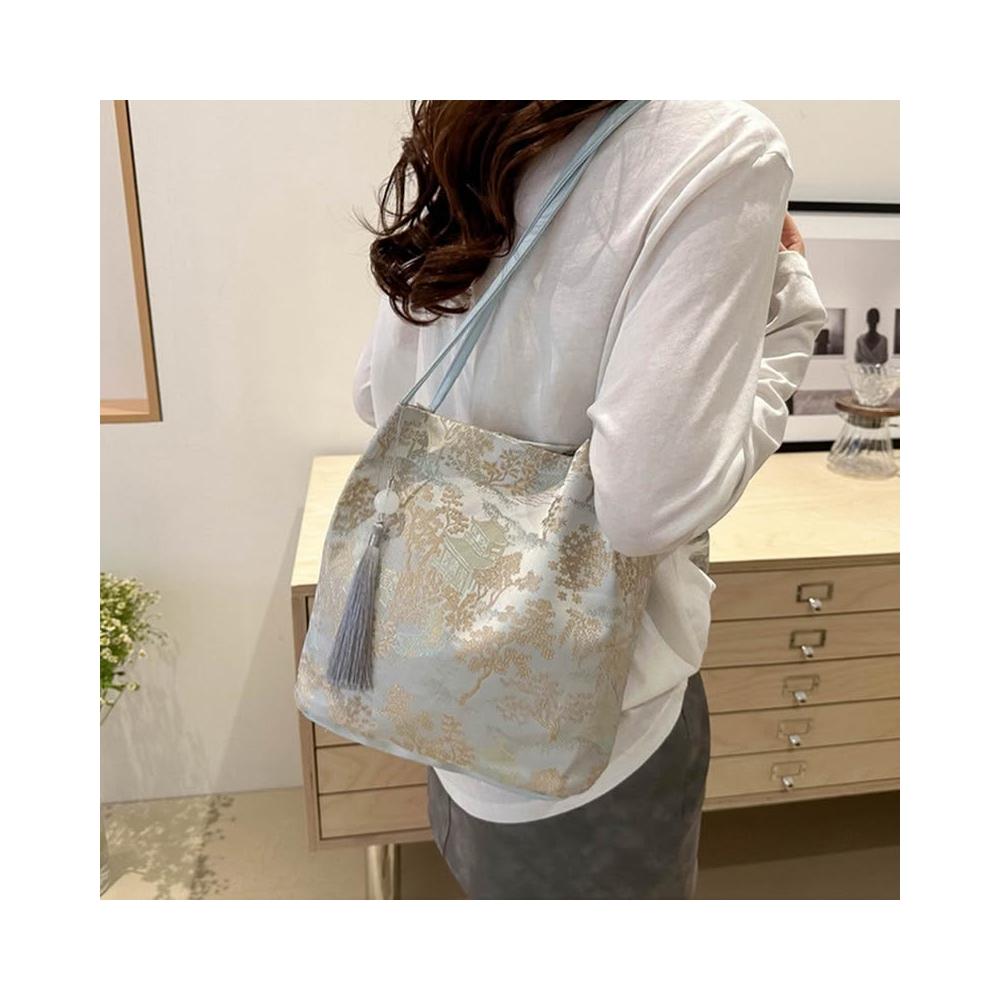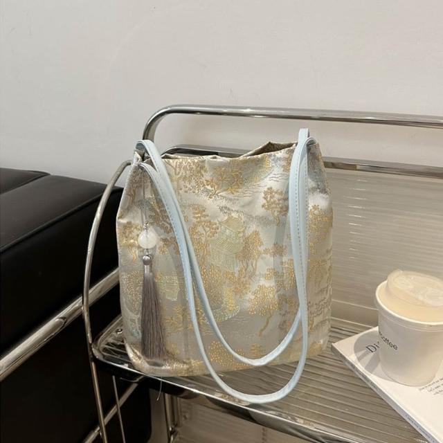 BONum 博紐女用漢風精緻刺繡輕便托特包 單肩包 水桶包