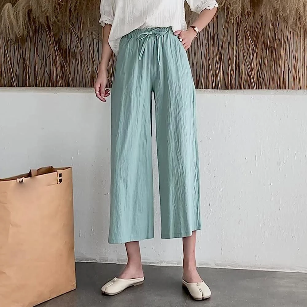Mila米拉 ★透氣棉麻舒適直筒寬褲七分褲/闊腿褲/休閒