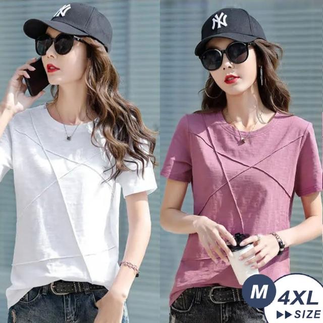 Mila米拉 ★立體剪裁舒適透氣竹節棉T恤上衣短袖/棉質/U領/T恤/多色/大尺碼