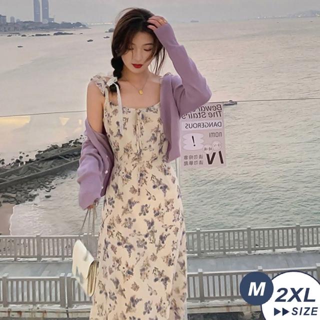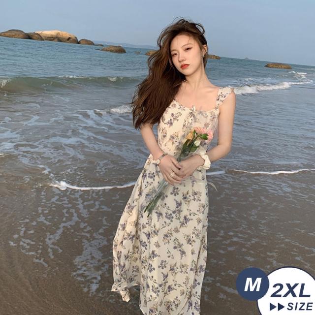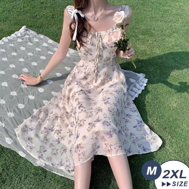Mila米拉 ★清新碎花綁帶雪紡洋裝春夏/無袖連身裙/碎花洋裝/吊帶長裙/收腰設計