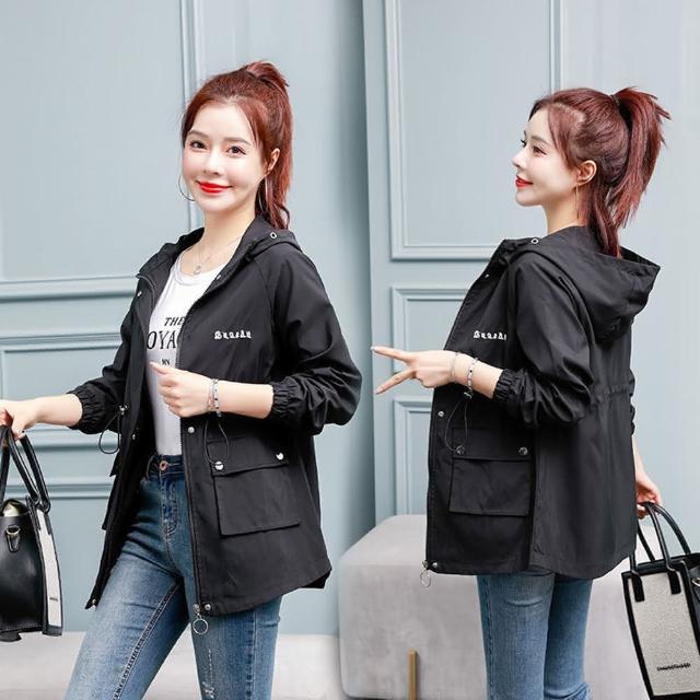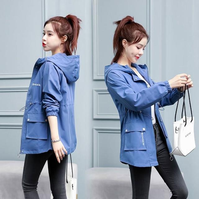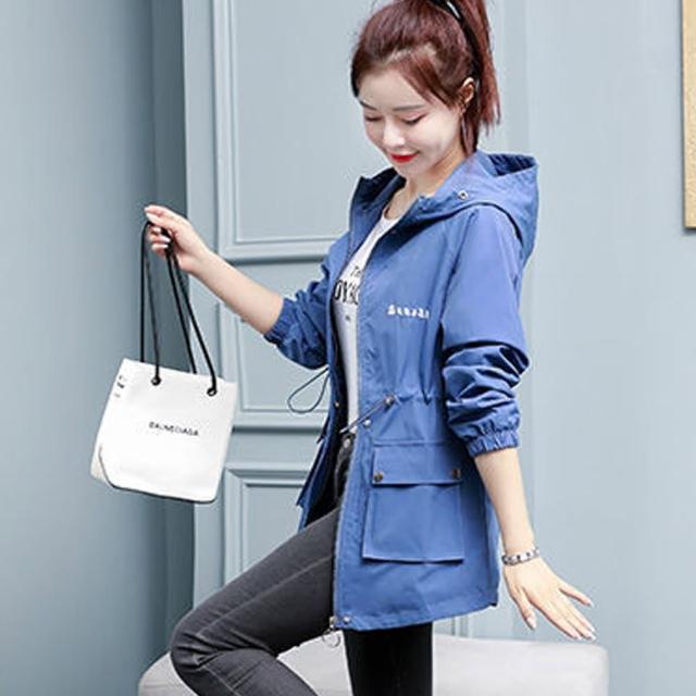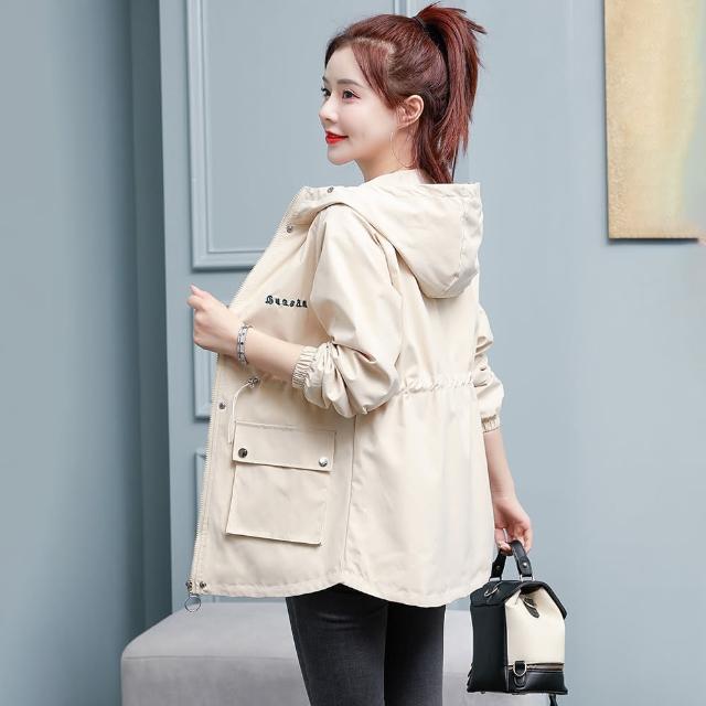 Mila米拉 ★韓系連帽大口袋風衣外套中長/拉鍊/拼接