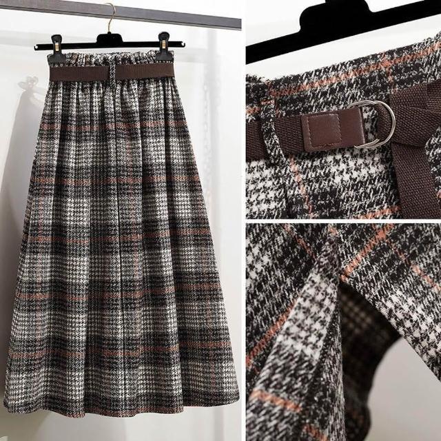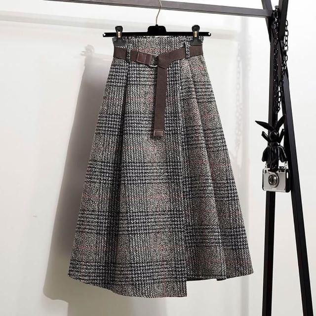 Mila米拉 ★毛呢格紋不規則長裙格子裙/長裙/女裝