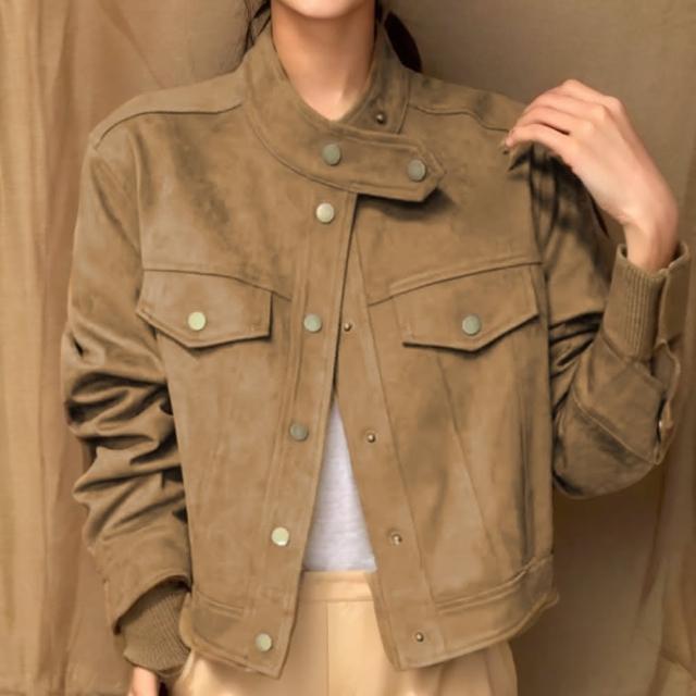 Mila米拉 ★仿皮感美拉德短版外套仿皮衣/麂皮感/大衣
