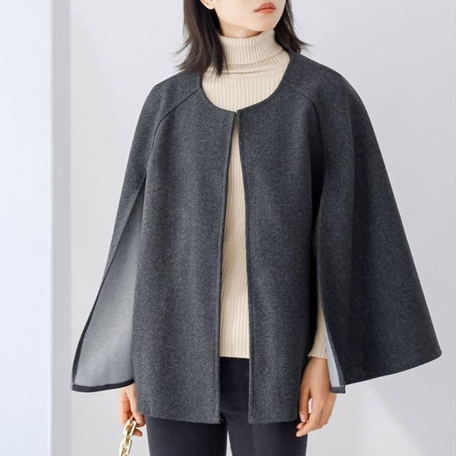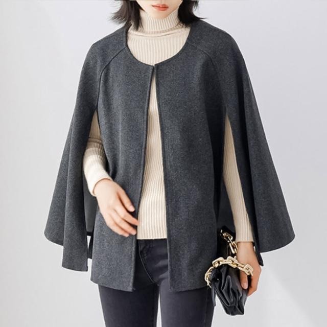 Mila米拉 ★披肩寬鬆素色斗篷外套/大衣/女裝/長袖