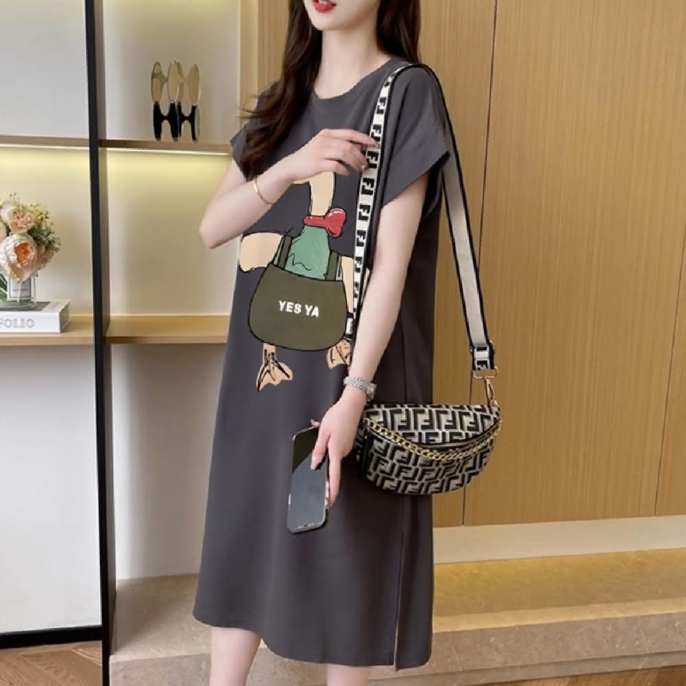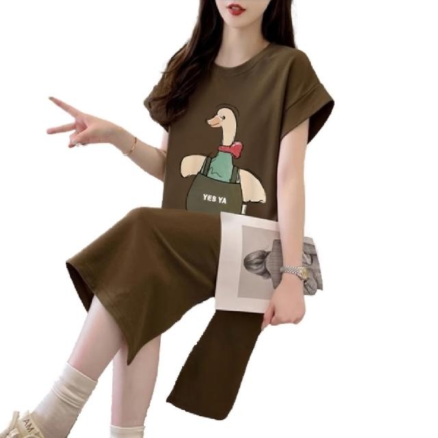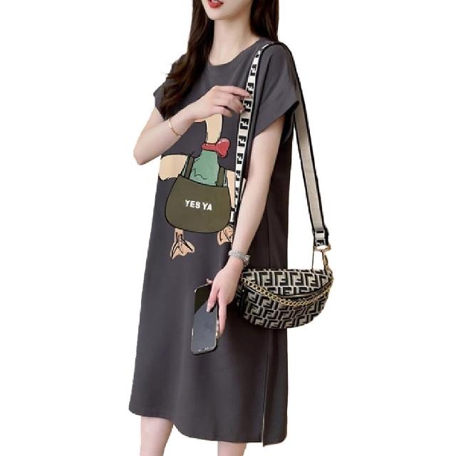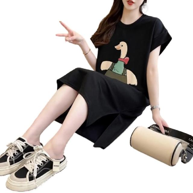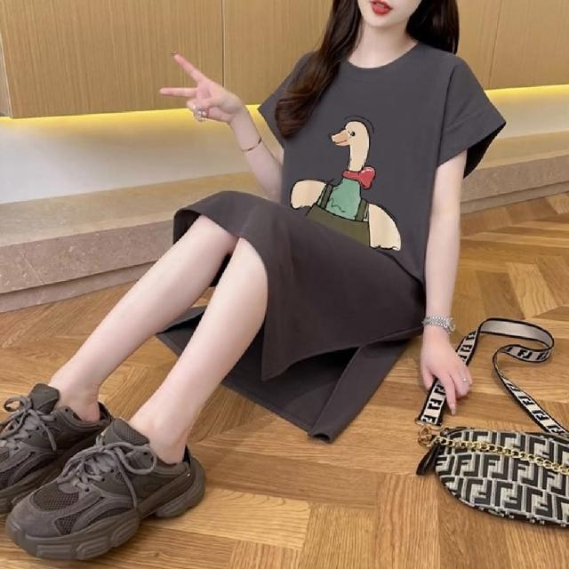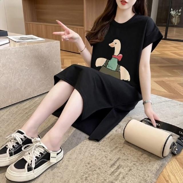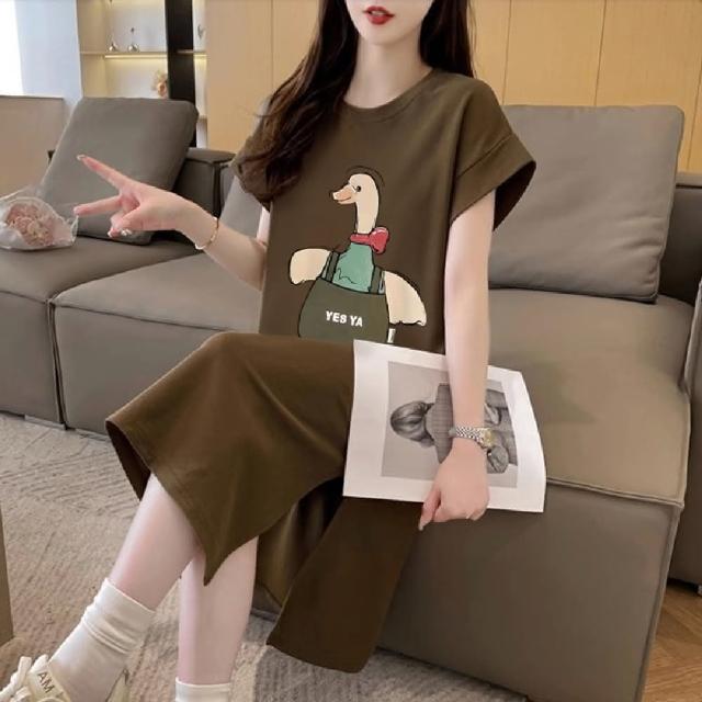 Mila米拉 ★可愛鴨印花連身中長裙女上衣/短袖/休閒